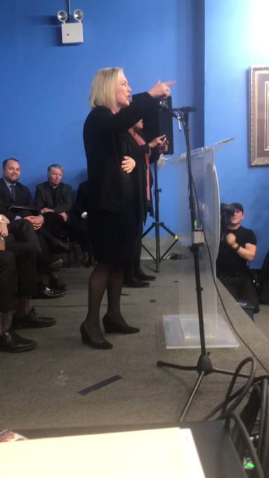 "We will wear the belt of truth because we know the truth," Gillibrand yelled to the crowd as she made awkward gestures. "We speak truth to power. We will put on the bright breastplate of righteousness because we know right from wrong."