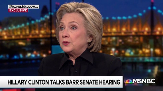 'Calling for [Barr's] resignation makes perfect sense, because he's not discharging the duties of the office; he's not going to resign, and at this point, I think that we know what we need to know about him,' Clinton said during an appearance on MSNBC's Rachel Maddow Show.