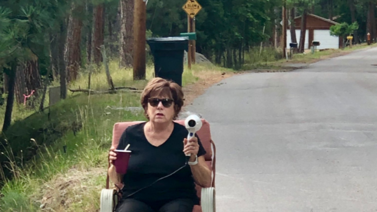 Patti's son Tim took a picture of her with the hair dryer and tweeted it out to Montana Highway Patrol Trooper Noah Pesola, hoping to catch his attention, and it did.