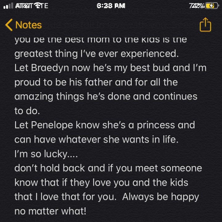 “Katie you are the most beautiful caring nurturing person I’ve ever met,” the note continued. “You are truly one of a kind...make sure you live life with happiness and that same passion that made me fall in love with you. Seeing you be the best mom to the kids is the greatest thing I’ve ever experienced.”