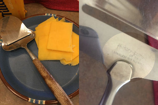 My grandmother’s Norwegian steel, Hickory Farms (of Ohio) cheese plane which she’s had since she worked there in 1977.