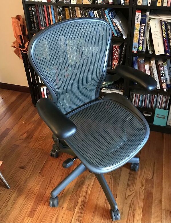Someone didn’t realize what they had and threw this Herman Miller Aeron to the curb this morning which I snatched up. Apart from a small tear in the upholstery it’s still in great shape after 21 years.
