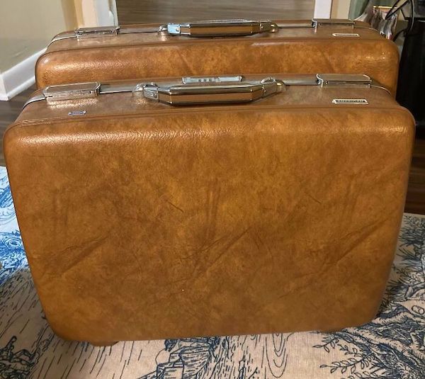 Just snagged these vintage luggage pieces for $8. 1960s maybe?