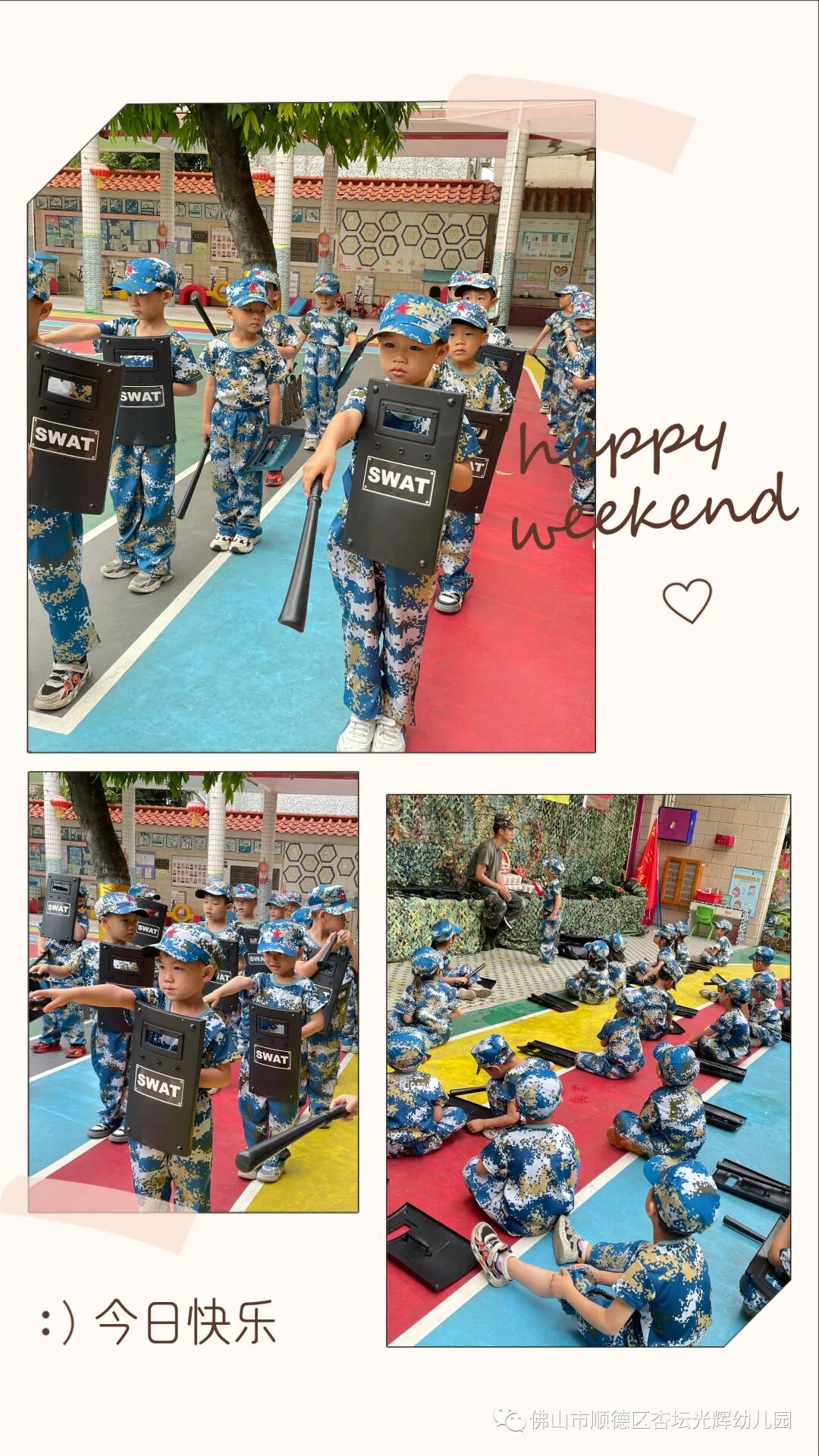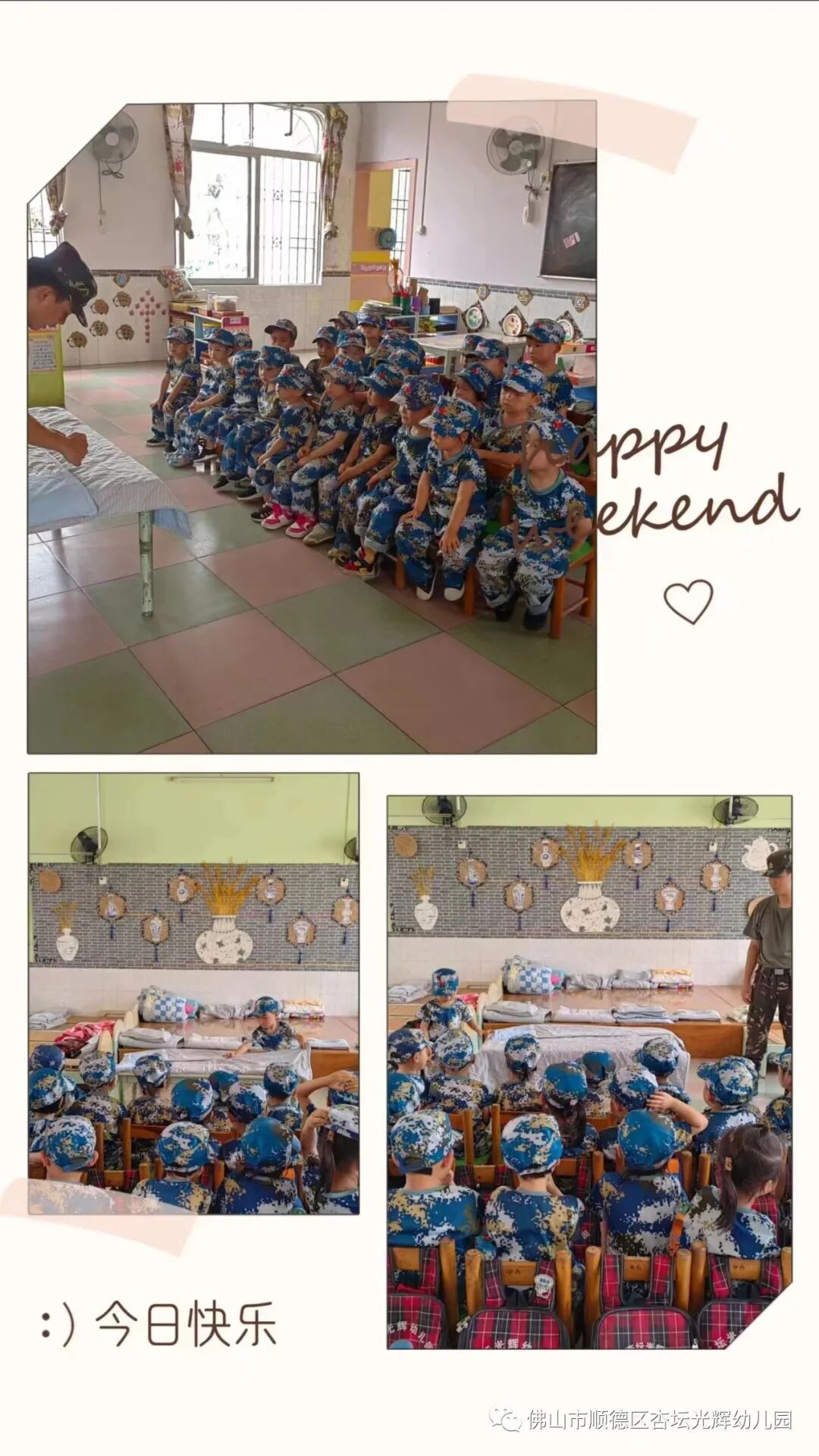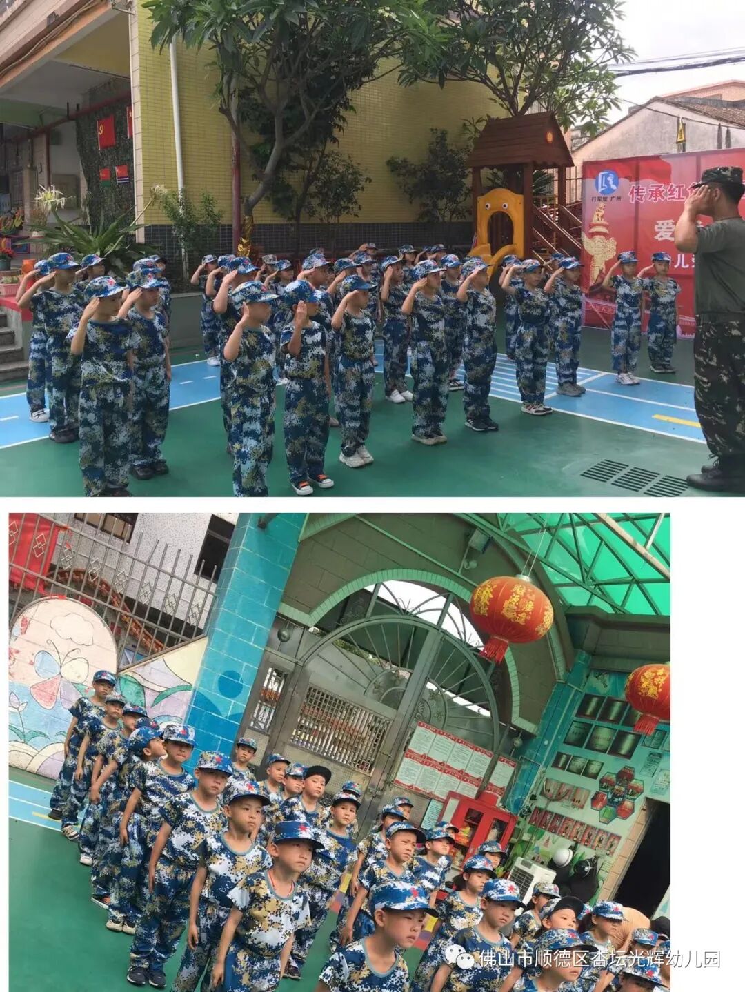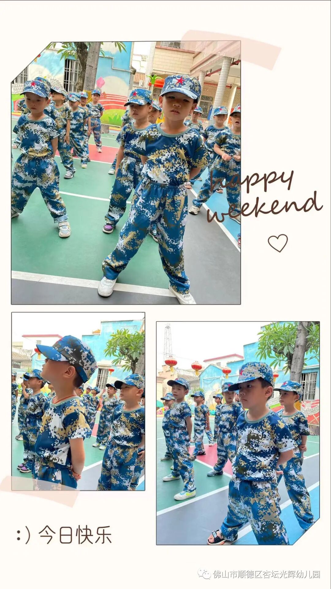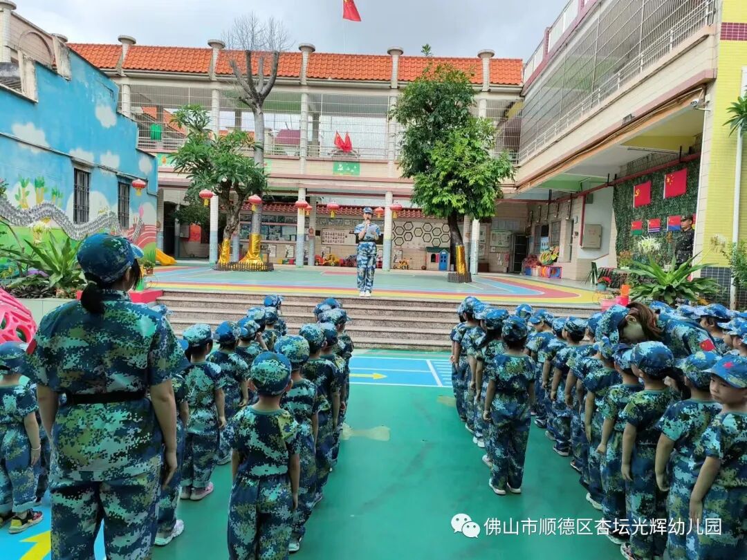 In May 2023, faculty members and more than 80 children of the Xingtan Guanghui Kindergarten in Guangdong province assembled on the playground for the opening ceremony of their school’s week-long National Defense Education camp, all wearing matching camouflage fatigues, according to the school’s social media account.